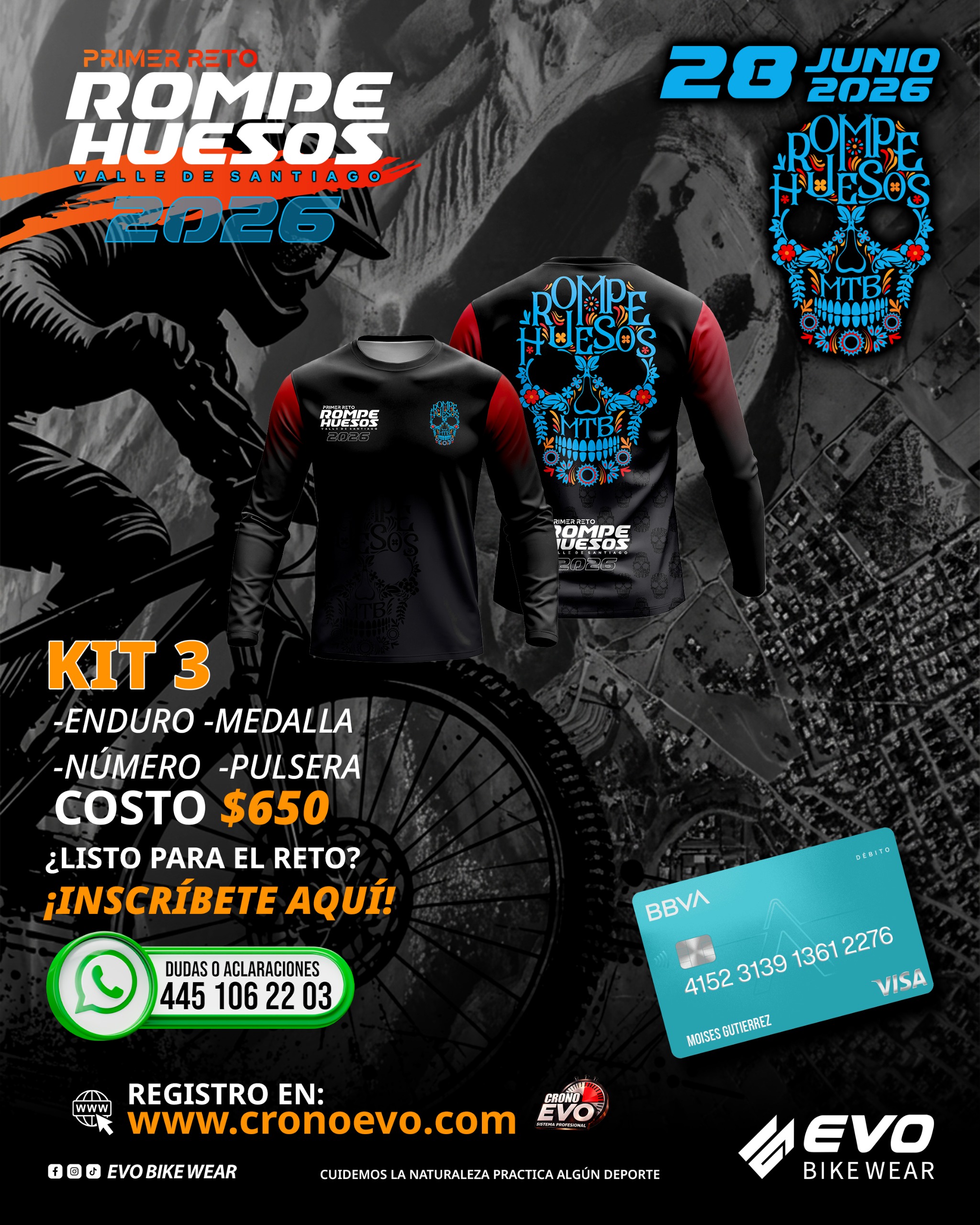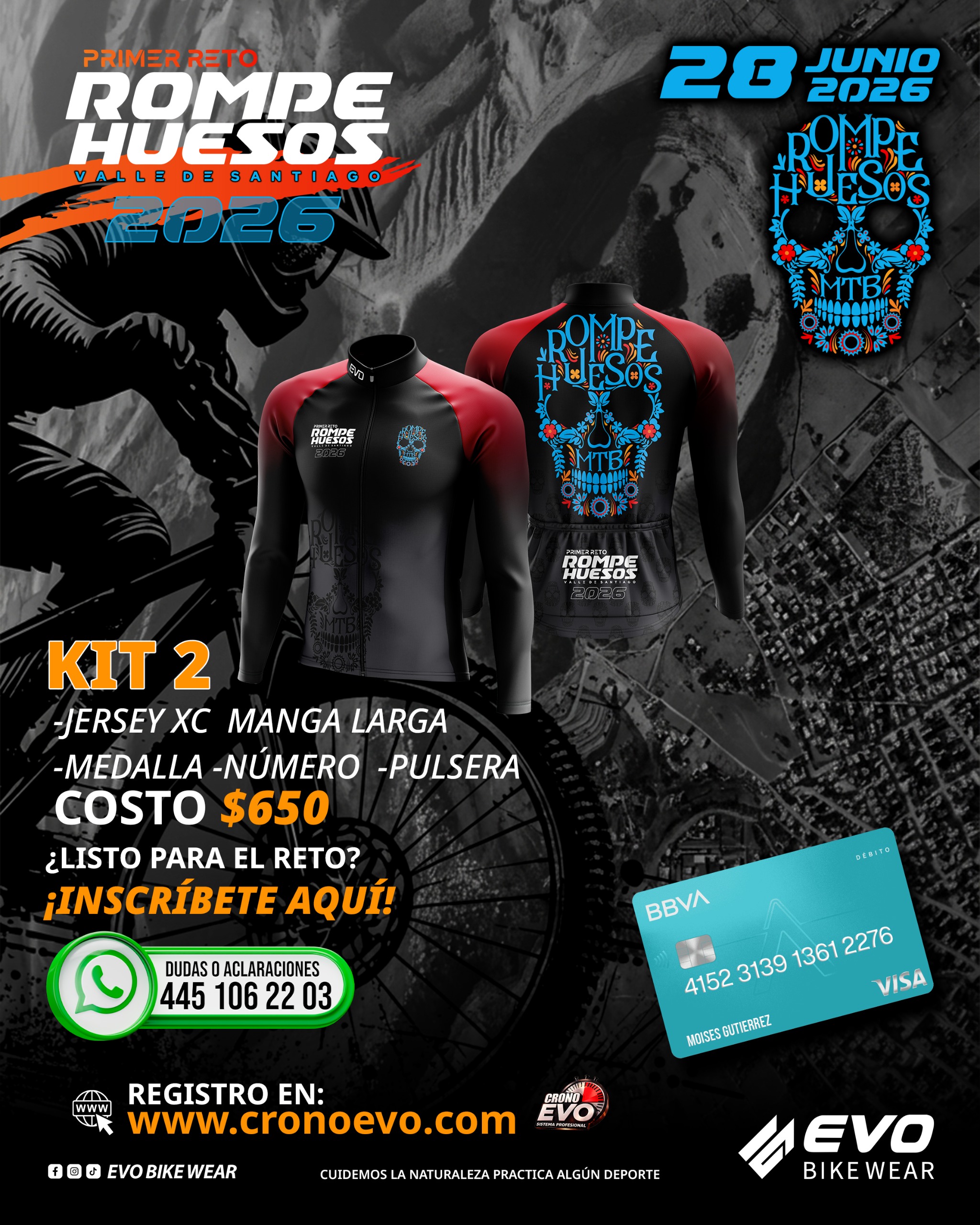 REGISTRO MAS INFO CONSULTA TU FOLIO INFO SOBRE LOS KITS REGISTRO AL EVENTO RETO ROMPE HUESOS Leer antes de hacer el registro: Si tu pago incluye a mas de un participante, debes de subir a todos los participantes y adjuntar el mismo pago para todos. Las imágenes deben de tener un peso de 4Mb Datos Personales del participante Nombre Completo: * Nombre del Participante Teléfono * Debe de contener 10 Digitos, numero nacional Correo eletrónico * Confirmar Correo eletrónico * Estado de la Republica * Selecciona una OpciónAguascalientesBaja CaliforniaBaja California SurCampecheCoahuilaColimaChiapasChihuahuaCiudad De MéxicoDurangoGuanajuatoGuerreroHidalgoJaliscoMéxicoMichoacánMorelosNayaritNuevo LeónOaxacaPueblaQuerétaroQuintana RooSan Luis PotosíSinaloaSonoraTabascoTamaulipasTlaxcalaVeracruzYucatánZacatecas Datos del Evento Distancia * Selecciona una OpciónCORTALARGA Kit Selecciona una OpciónKIT 1KIT 2KIT 3KIT 4 Talla * Selecciona una OpciónXCHCHMGXG2XG3XG4XG5XG Team Llenar campo solo si perteneces algún Equipo Subir Archivos Subir el Pago * Arrastra un archivo aquí o haz clic para cargar Seleccionar Archivo Tamaño máximo del archivo: 4MB Permitidos, jpg - png - pdf Subir Logo Arrastra un archivo aquí o haz clic para cargar Seleccionar Archivo Tamaño máximo del archivo: 4MB Permitidos, jpg - png Subir Foto Arrastra un archivo aquí o haz clic para cargar Seleccionar Archivo Tamaño máximo del archivo: 4MB La foto debe ser la que hará la bienvenida * Acepto que todo los datos son correctos. Enviar Si eres humano, deja este campo en blanco. Δ
